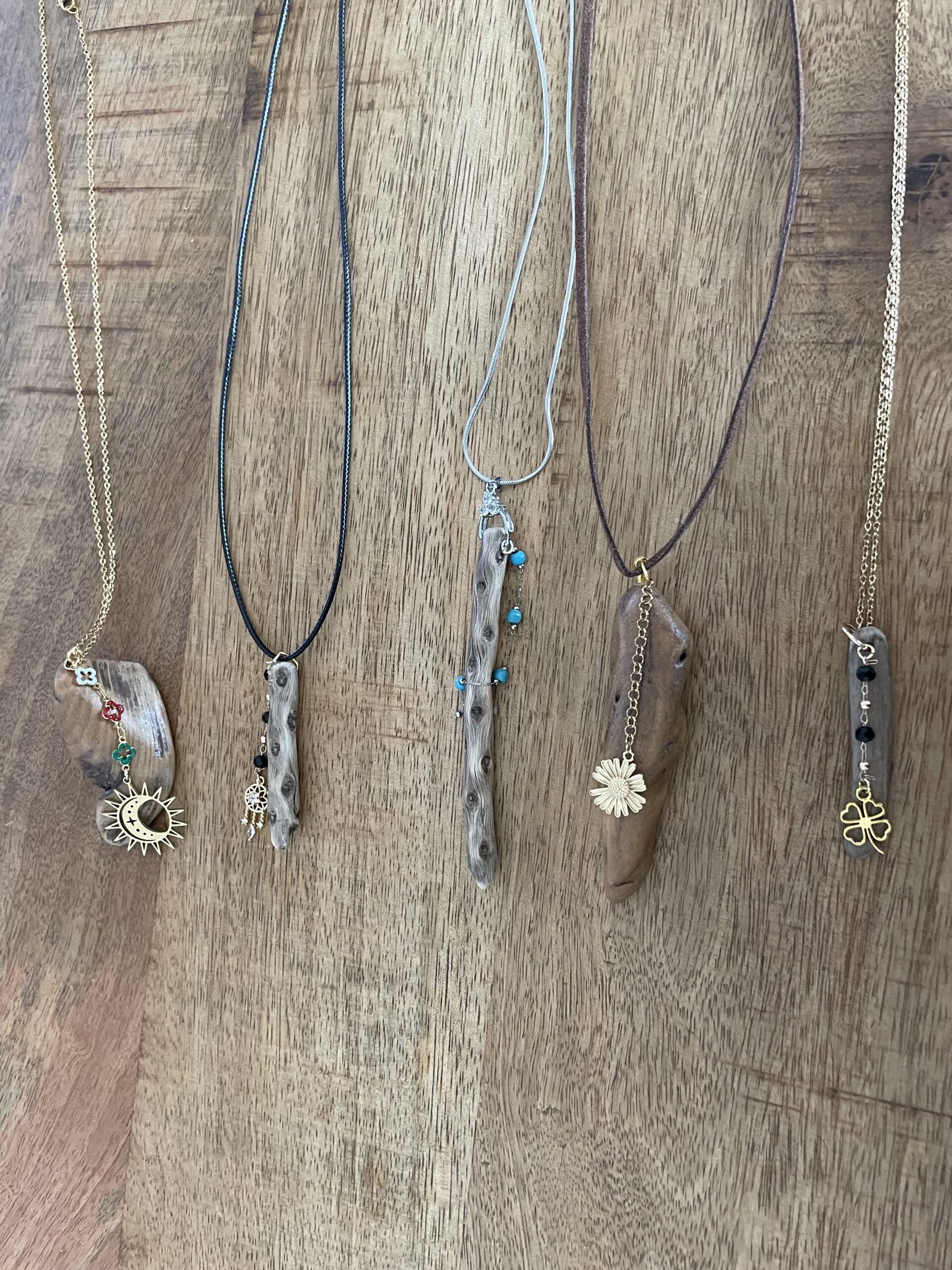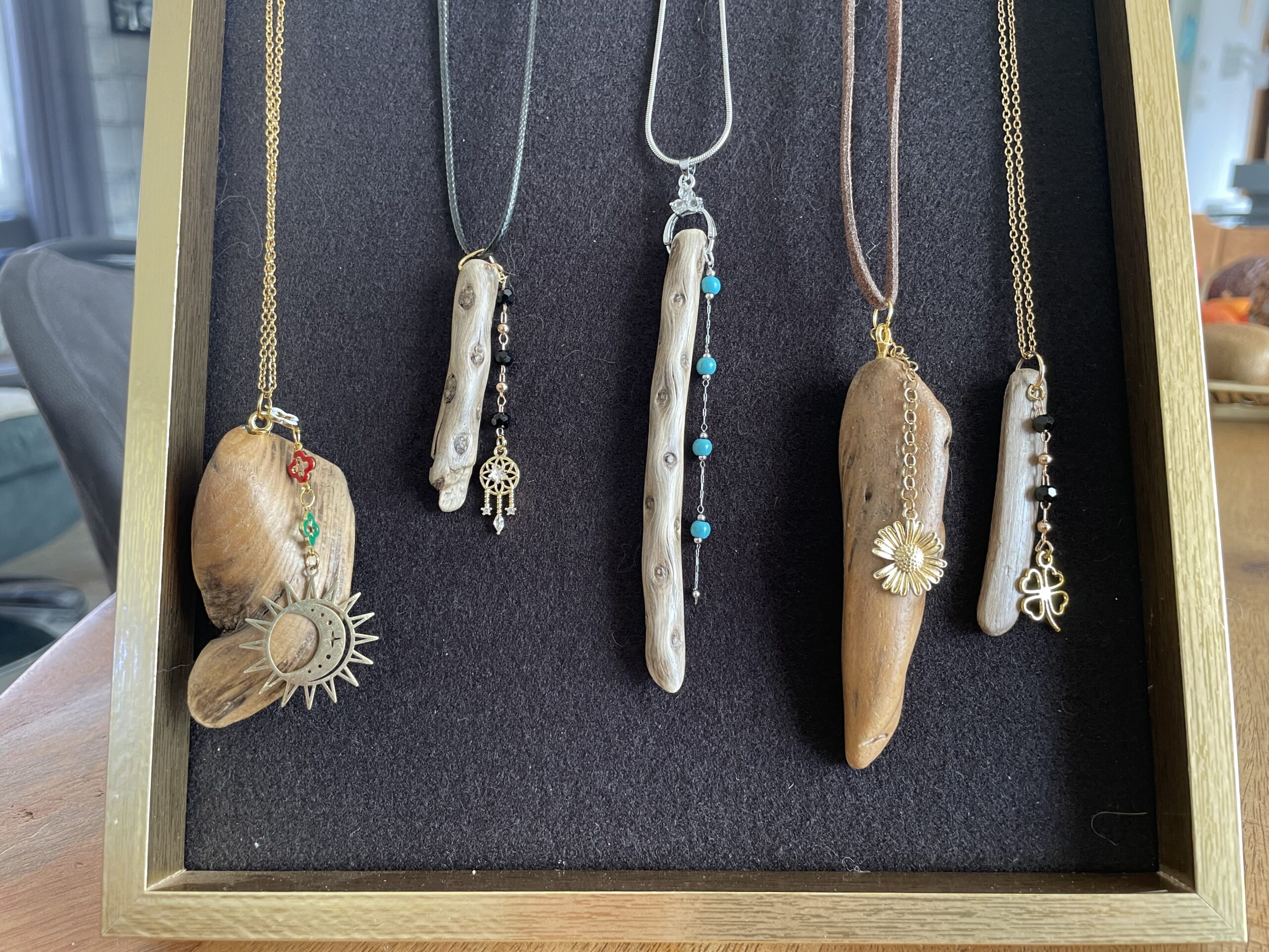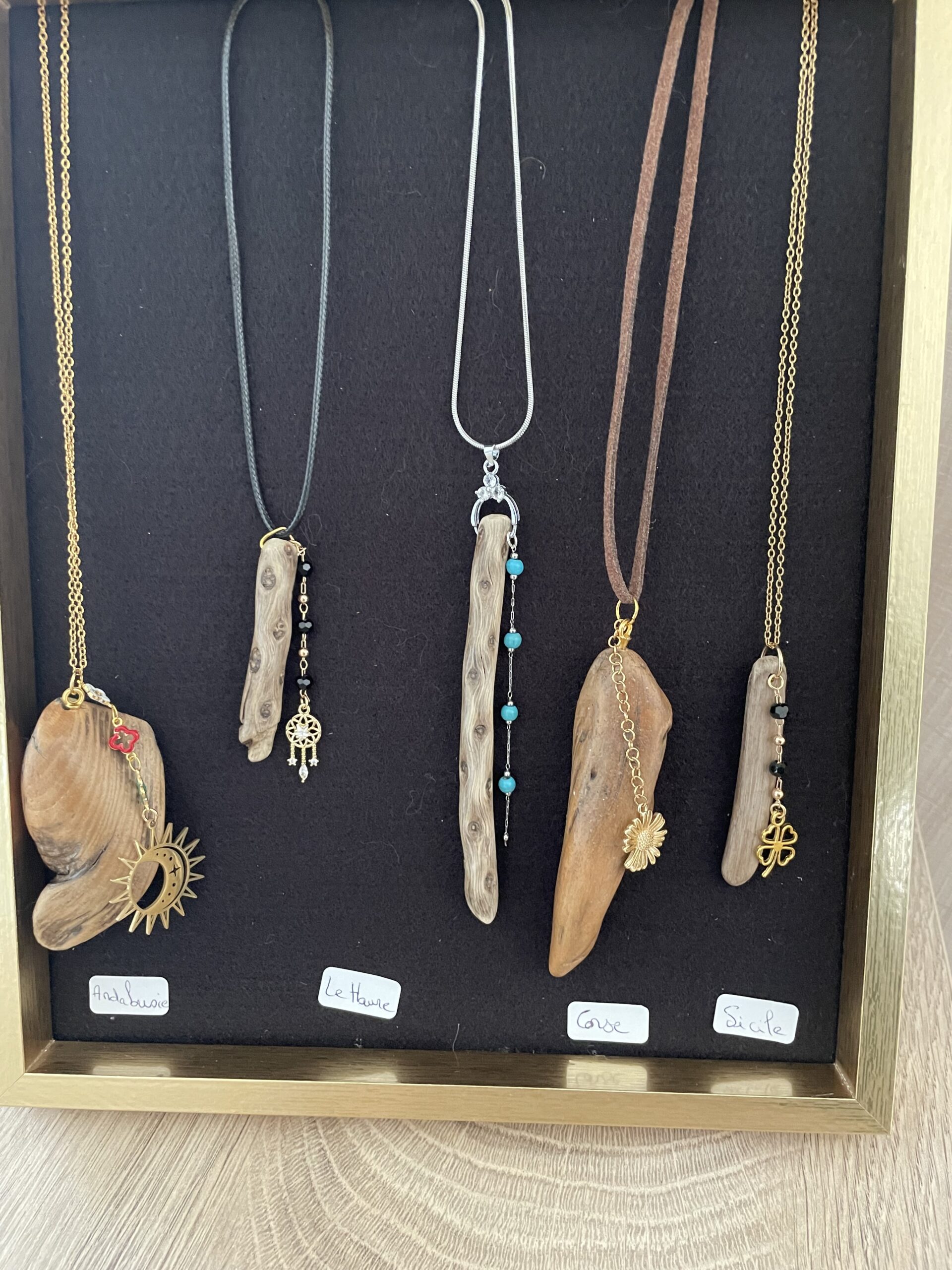 L’Art Autrement voyage. Cette collection de pendentifs exclusifs marie la chaleur du bois à des trésors glanés au fil des côtes, du Havre jusqu’aux terres ensoleillées d’Andalousie. Chaque pièce raconte une escale, une lumière, une émotion.
